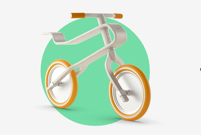 设计师Krisjanis Jermaks设计了一款儿童自行车Brum Brum。Brum Brum自行车的车架为一块细长的胶合板弯曲而成,车架的一段弯曲成一个车座悬在空中,车架的另一端中间挖空形成自行车的车轮竿与后车轮的主轴相衔接。