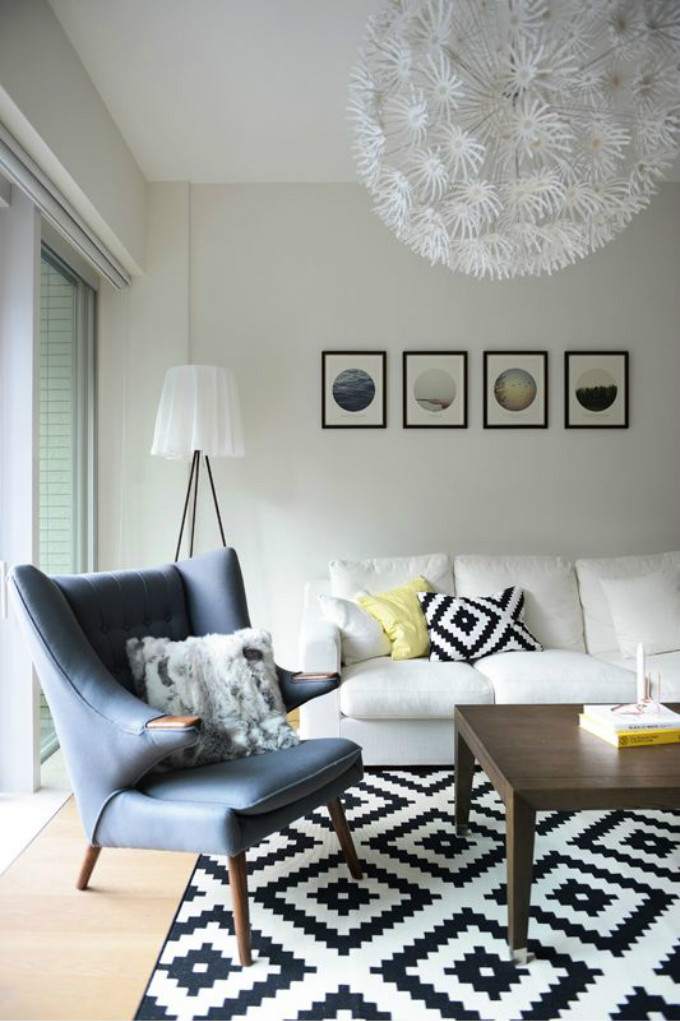 11、“炫白”民族风:地毯和靠垫都是统一的阿兹特克风,这种复古民族调有直击心灵的力量,但稍有不慎就会掉进“过于个性化”的陷阱。纯白色的沙发,不仅可以轻松越过这一民族风特有的障碍,还能呈现出一种宗教般的圣洁感。