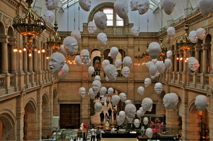 你看这个从天花板上错落有致得垂挂着大理石头像的雕塑展厅,远观像骷髅头却丝毫没有恐惧感,即使密密麻麻得分布,却只能感受到大气,丝毫没有拥挤和局促感。这样的布置,大胆又有想象力。之前也有不少人把这些悬挂的大理石头像拍下来po到社交网络上,哪怕只是看着图片,我都可以想象出苏格兰人边玩儿艺术边喝酒大笑的样子。