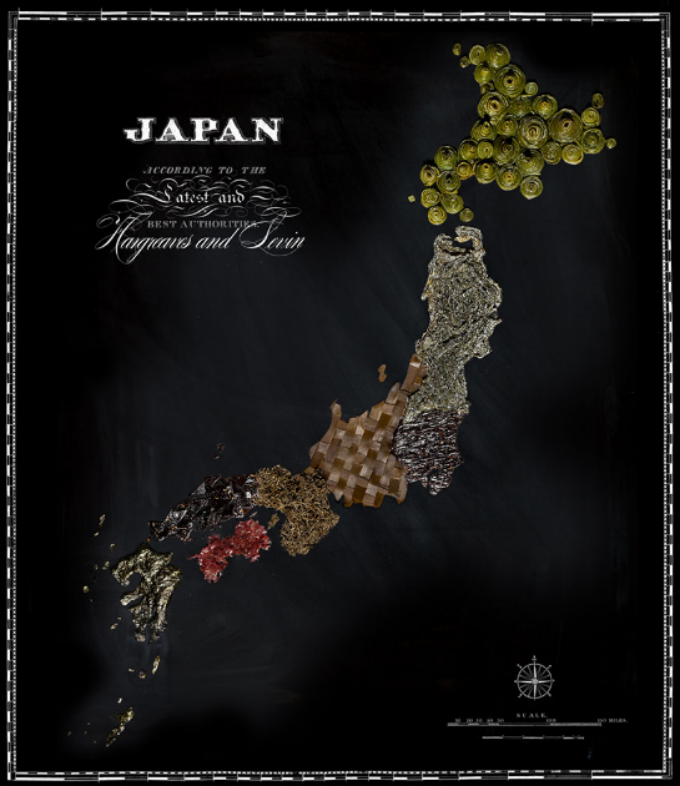Henry Hargreaves用不同的食物拼出不同大洲、国家的地图;
