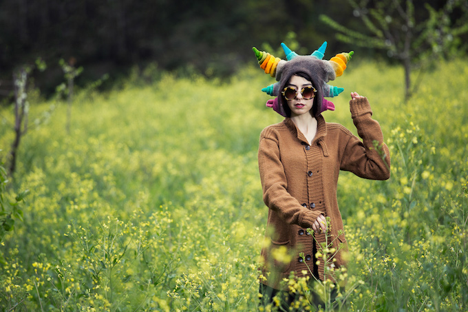 众多材料中,他爱上了质感和传统织物相似的毛毡,利用毛毡做出了别具一格的帽子、包包甚至是围巾。