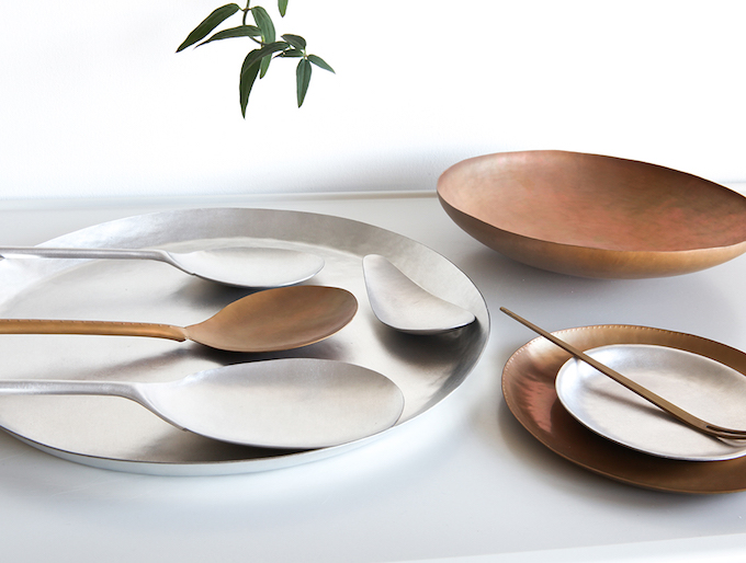 但身为女性,Naho Kamada给这些金属器皿带来了生活的温度。可以看到,不是散发着冰冷死板的工业气息,每一件器物表面都有细微的痕迹,那是手工制作留下的痕迹,带着些许生活气息。