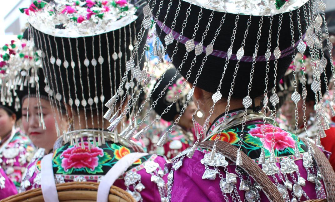 在苗家人看来,“无银无花,不成姑娘;有衣无银,不成盛装”,每逢佳节盛会,随处可见着银饰盛装的苗家女,银饰的铃铛作响伴随着芦笙舞的美妙,共同述说着苗家人的千古传奇。
