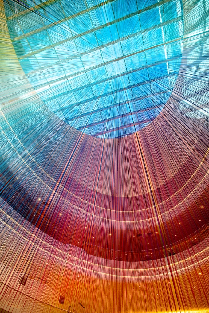 也是同年秋天,他在明尼苏达州布鲁明顿市美国购物中心(Mall of America)进行的室内纱线装置创作,再一次刷新了大众对色彩的定义。