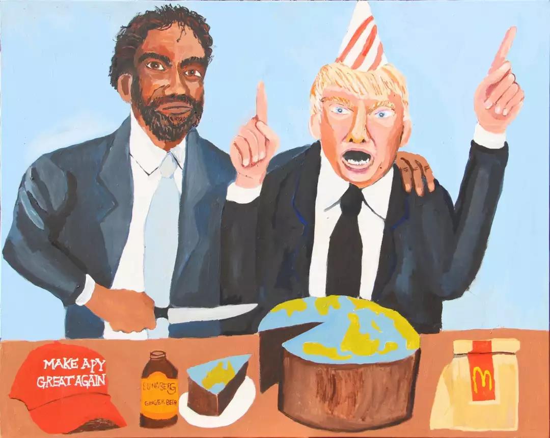 《Vincent & Donald (Happy Birthday)》(2018),Vincent Namatjira,图片由艺术家和This Is No Fantasy dianne tanzer + nicola stein画廊提供