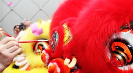现如今在岭南传统民俗活动中,依然保留着「醒狮点睛」仪式,将朱砂涂在舞狮的眼睛上,象征赋予生命。