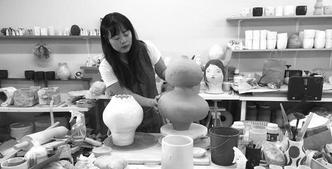 在一次动画论文写作中,卡壳的 Rami Kim 随手拿起手边的黏土捏了一个雕塑,然后好奇地将它放进烤箱看看成型效果。看着黏土由软变硬,成为一件永久雕塑作品,Rami Kim 对陶塑产生兴趣。