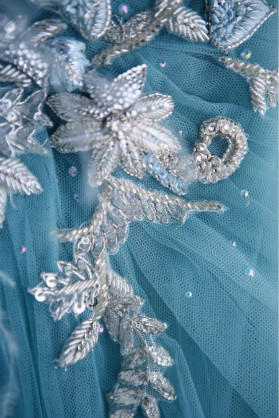 西式刺绣中,绣师会将其它装饰手法与刺绣结合,使绣品更有新意,甚至会在平绣、手绘、印染的基础上,添加珠绣、丝带绣、亮片绣、立体花朵绣,使其富有层次感和立体感