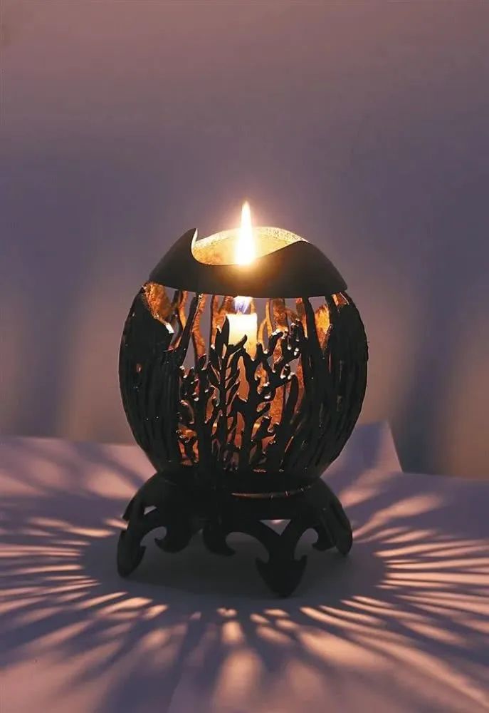 椰子虽然小小一个,但椰雕制作过程非常复杂,要经过选料、造模、雕刻、通花、镶嵌、抛光、修饰等多道工序。椰壳经过匠人之手的雕琢被赋予了新的生命。