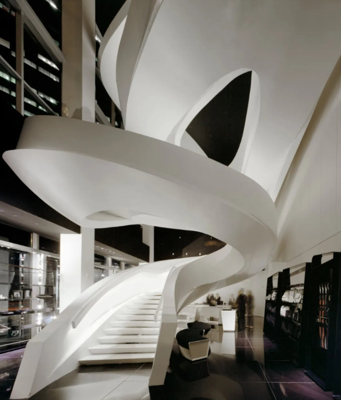 这是一个完全独立的结构,其设计理念挑战了常规的几何形体,如同漩涡般的绸带在立体的空间内拂过每一楼层。