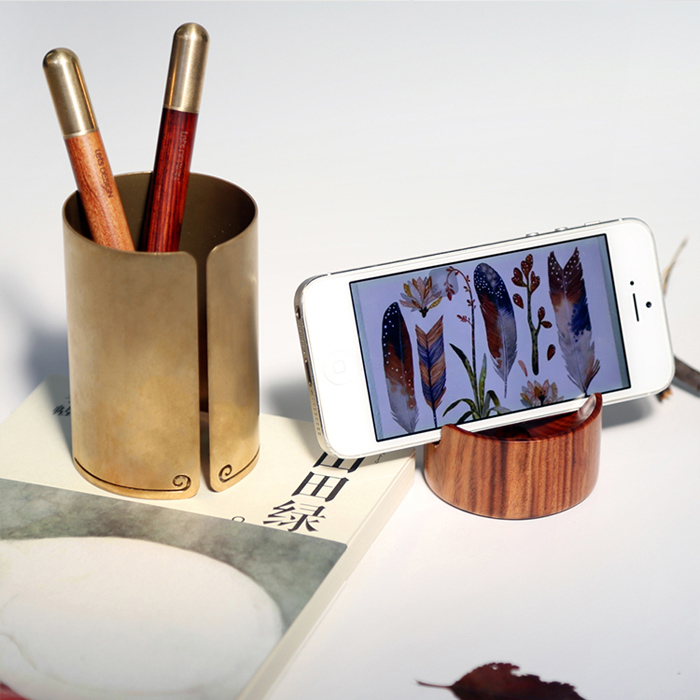 这款笔筒采用禁锢圈的元素理念,不仅是视觉元素的运用,更为重要的是,巧妙利用了铜套的弹性,可大可小,在松紧之间产生万般地变化,构思精巧实用而不造作,浑然天成。