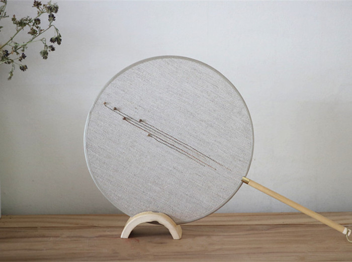 这款团扇采用天然植物纤维亚麻+植物根茎制作,会因为日照和主人的生活习惯慢慢变色,这种色彩的变化加入了岁月和主人的痕迹,极其自然。也变得更加富有感情和人文价值。