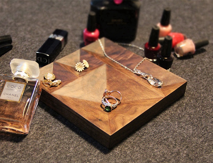 以“四水归堂”为灵感设计的木盘,不同大小的方格分别盛放不同尺寸的物品,可以拿来作首饰整理,珠宝衬托,小物收纳,茶包摆放。