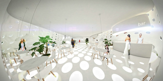 里面所有的设备都提供给当地居民和酒店客人使用,除了有允许酒店客人免费使用的一些设备如健身房、剧院或者洗衣店。你可以找到咖啡店、酒吧、游戏场地、商店、展览区域、沙发区、迷你剧院、图书馆、会议大厅、酒店台。可谓是一座外表科幻内部样样俱全的概念公共场合。