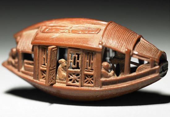 明有奇巧人曰王叔远,能以径寸之木,为宫室、器皿、人物,以至鸟兽、木石,罔不因势象形,各具情态。尝贻余核舟一,盖大苏泛赤壁云。 —《核舟记》(明,魏学洢)