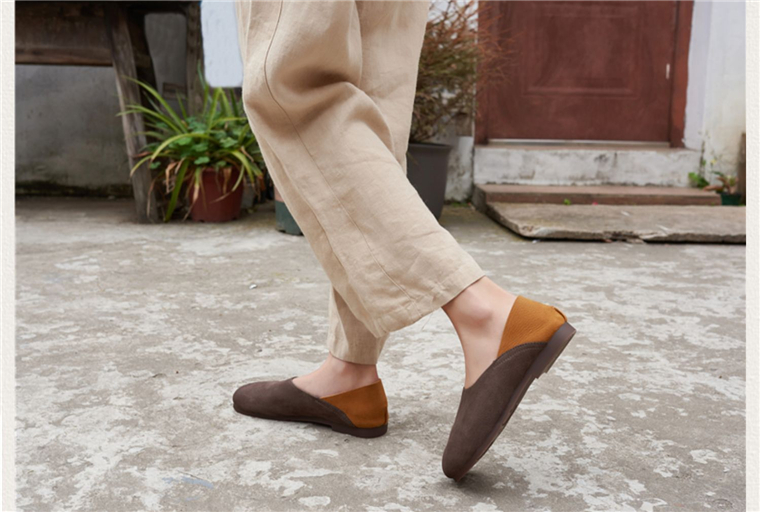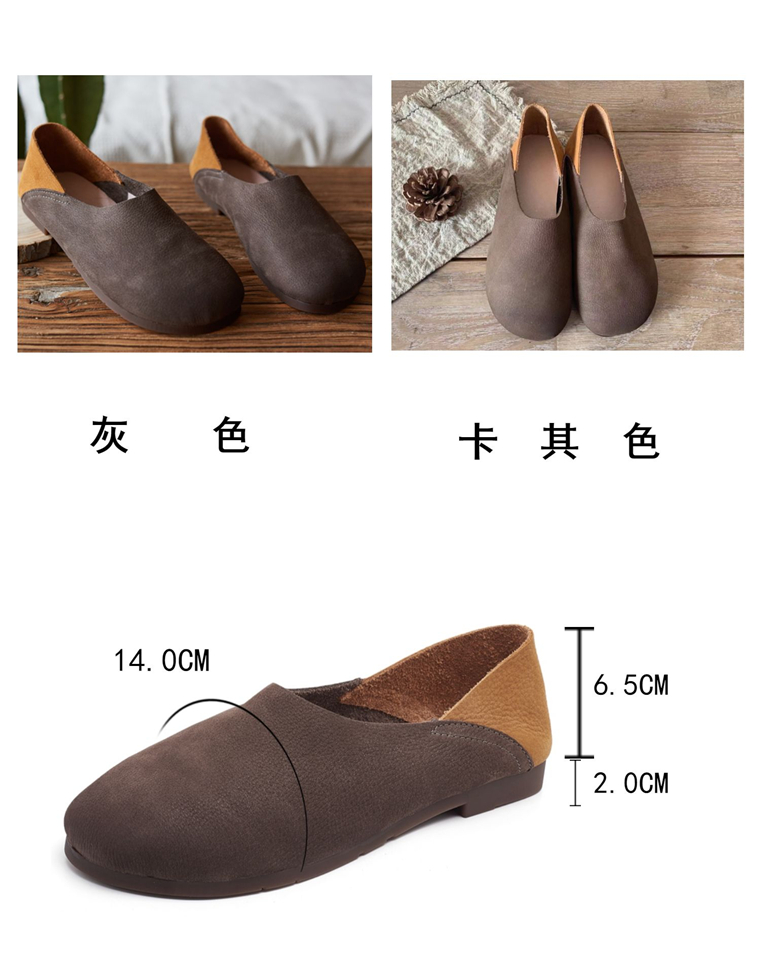 森系复古圆头擦色拼接真皮舒适百搭懒人一脚蹬女单鞋