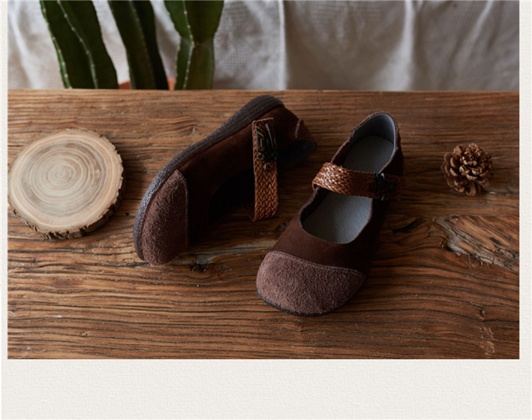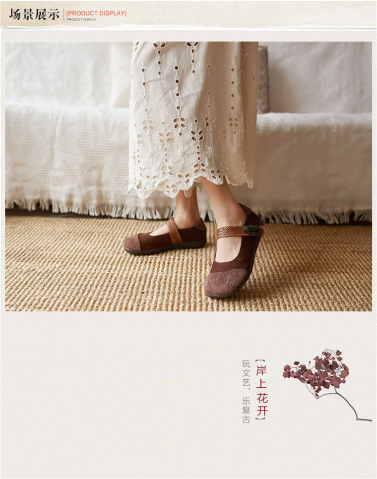 春夏森系复古真皮拼接编织魔术贴软皮舒适百搭平底女单鞋