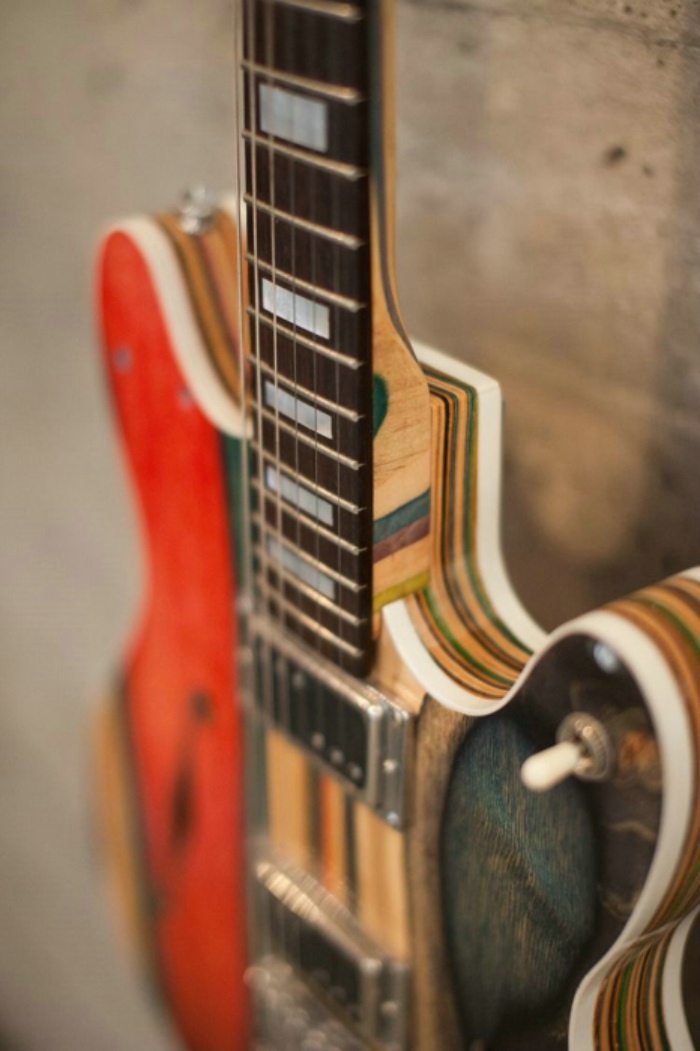 Nick Pourfard是一位在旧金山上学的22岁的工业设计专业的学生,同时也是一名吉他手以及滑板爱好者。看到市面上经常有很多废弃的二手滑板,突发奇想的他,觉得为什么不将自己最热爱的两大兴趣结合在一起,把废弃的滑板改造为手工吉他。