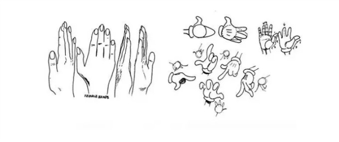 实际上如果细心留意我们会发现从迪士尼早期有名的角色米老鼠、汤姆杰瑞等,到汽车总动员等都是动物拟人的形态。它们大部分都是四脚哺乳动物,而对于四脚哺乳动物来说,四指是正常的。直到现在为止,还有很多除了动物拟人之外的角色还是只有四根手指,这些一般都是Q版或者小孩,因为相对来说Q版和小孩的手比较胖比较小,四根手刚好能能表现出一只手应有的动态,也不会使手显得过于宽与复杂,动起来就像一串拥挤的香蕉。