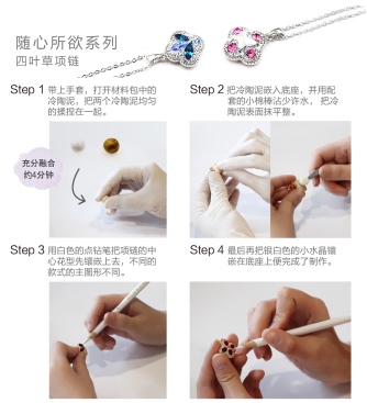 3.用白色的点钻笔按图纸顺序将水晶镶嵌上去(不同款式所配水晶颜色不同)